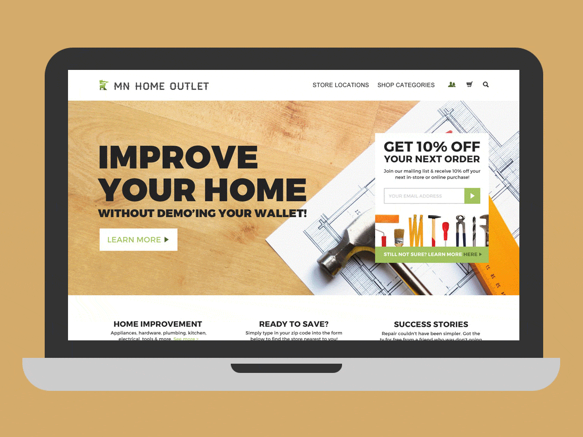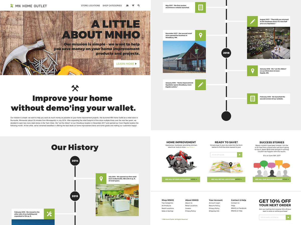 I've worked as lead design for the Minnesota based secondary market retailer MN Home Outlet since it first opened its doors in 2014. Over the last five years I have worked to build a consistent brand across multiple platforms including web, social media, print design, retail design, uniform design and ad campaigns.